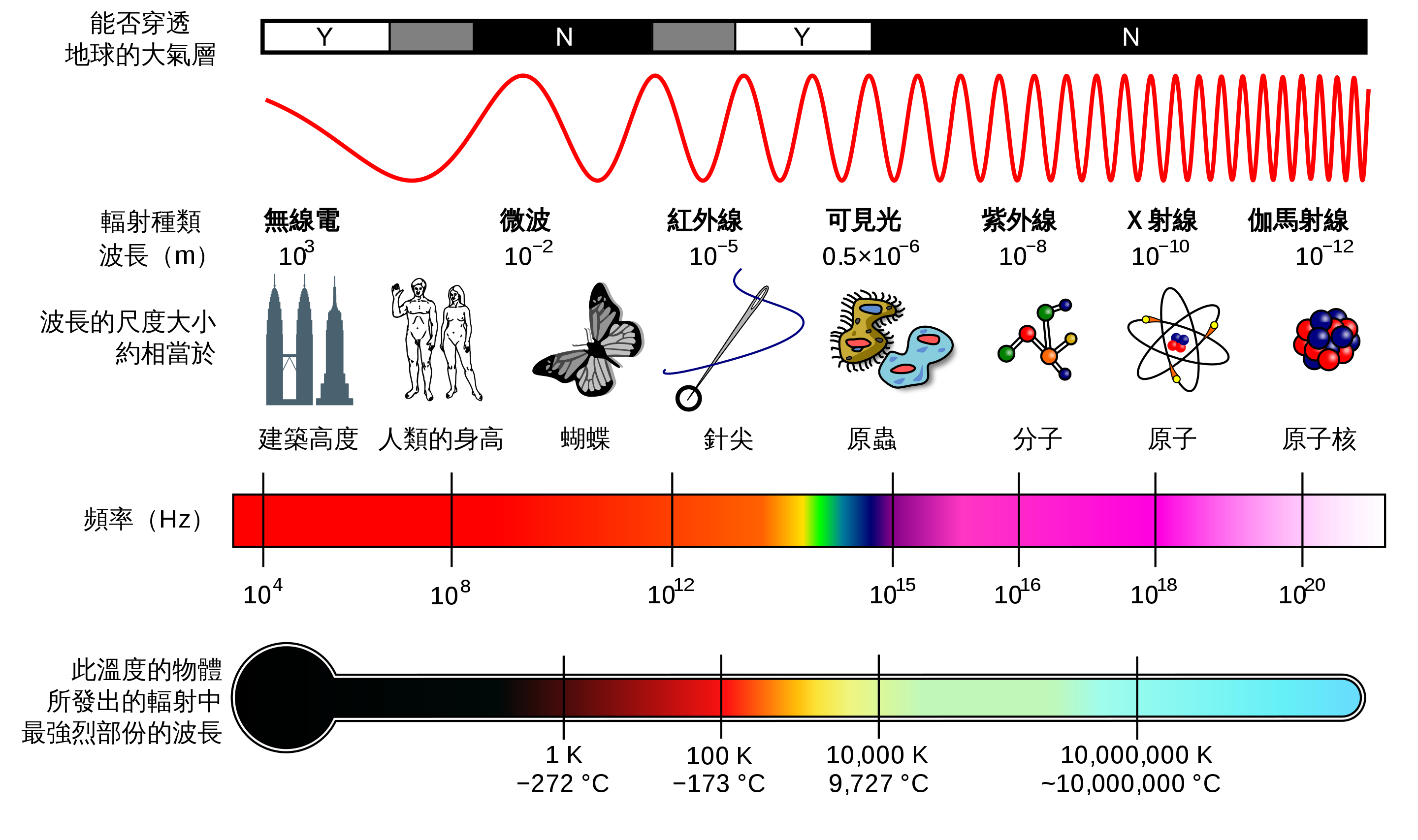 微波 太赫兹 红外线 可见光 紫外线 x光